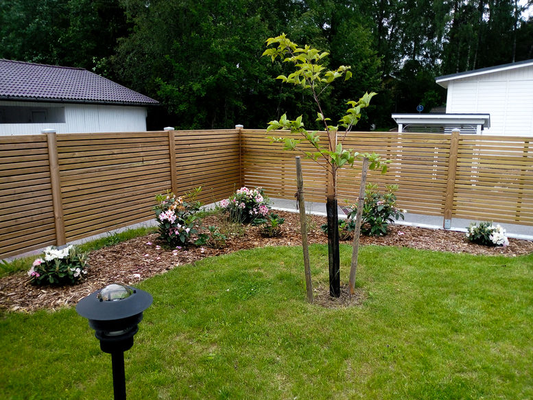Alkutilanne oli vastavalmistunut rivitalon piha, jonne oli kylvetty nurmi.